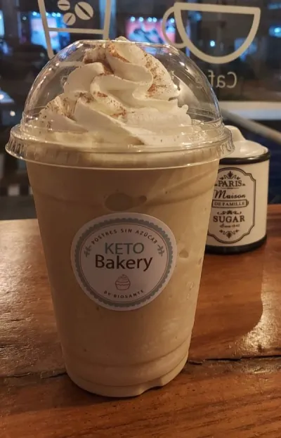Carga de espresso, hielo, leche entera, base neutra y crema batida (no es keto).