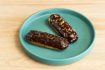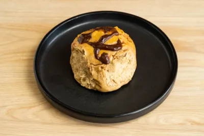 Elaborado con harina de almendras, ghee, leche de almendras, relleno de una mermelada de fresa sin azúcar, cubierto de chocolate semi amargo al 70%.