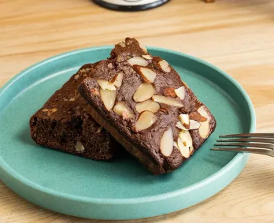 Brownies con cubierta de nuez y almendras.