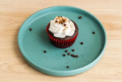 Cupcake gluten free con cubierta de crema vegetal, reducidos en azucar o con frosting de queso crema.
