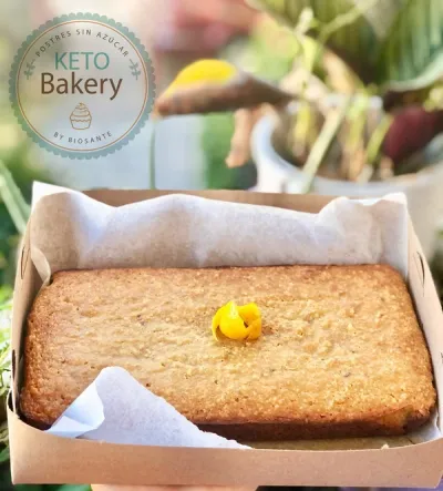 Pan keto con ralladura de naranja y cobertura de azucar glass monk frut.
