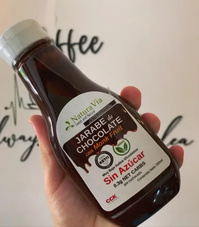 Jarabe de Chocolate con Monk Fruit ¡Hecho con Cocoa Natural!, Keto, sin azúcar, sin lacteos, sin gluten, sin soya, vegano.